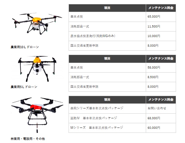 産業用ドローンを安全に使用するには一年毎の年次点検・メンテナンスを推奨しています。(農水協認定機種飛助MGは年次点検必須です) 産業用ドローンは多種多様の高性能部品が取り付けられており、各部品の「点検・洗浄・確認」を実施することで、機体寿命が長くなり、後の部品交換を最小限に抑えることができます。 マゼックスでは年次点検をリーズナブルな価格で実施しており、機体の整備が可能な認定整備所も日々拡充しておりますので、お近くでメンテナンスや修理を受けていただくことも可能です。