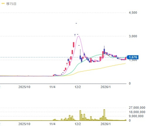 1 ステラファーマ(株)4888・東証GRT 320 +62 13,697,600株
