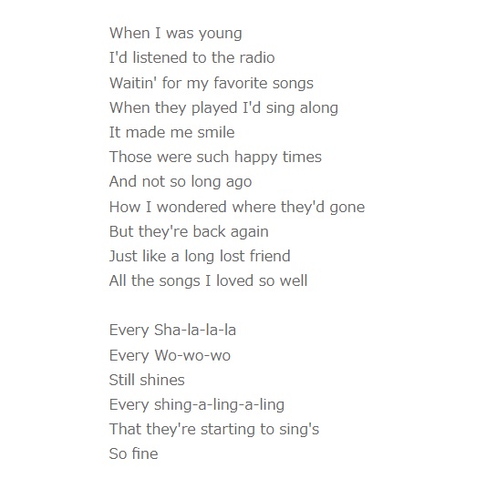 YESTERDAY ONCE MORE 歌詞と和訳